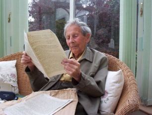 Donald Watson, o homem que inventou a palavra, era vegetariano a desde 1924, então "sem laticínios" de 1940 (inventando 'vegan' em novembro de 1944). Morreu em 2005, aos 95 anos. A foto mostra-o na vida posterior lendo sua primeira edição do 'Vegan News' (Foto de Joe Connolly - Veg News)