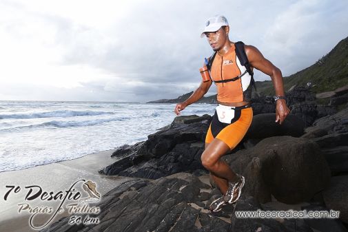 Bom, chegou o grande dia, acordei às 03h30min da madrugada para tomar o meu café da manhã, uma mistura de alimentos vegetarianos, que chamo de tigela de campeão, sempre trago de casa todos os alimentos que vou precisar nas competições, pré, durante e pós prova, terminei de comer e voltei para a cama. Acordei novamente às 05h45min, minha mãe já estava extremamente nervosa, como sempre, parecia que a minha calma estava deixando-a mais nervosa ainda. Chegamos ao pórtico de largada, abracei velhos amigos que junto comigo também iriam desfrutar de longas horas de dor e prazer! Éramos apenas sete atletas na categoria individual, seis homens, entre eles Áureo Adriano atual Vice Campeão da Br 135, uma corrida de montanha com 217 km, e uma super mulher, Débora Aparecida de Simas, dona da segunda melhor marca brasileira (207 km) em corridas de 24 horas, foi a primeira vez que a organização da prova abriu inscrições nesta categoria, e o tempo limite para a conclusão da prova era o mesmo das equipes de seis e três atletas, 6min40seg/km, ou seja, teríamos 10 horas para concluir 90km em um percurso onde encontraríamos vários obstáculos, como: três travessias de rio, a subida de uma escadaria contendo 226 degraus, 1,7km de trilha com subidas e descidas bem acentuadas e, do km 40 ao 60 nada mais nada menos do que 20km de praia inclinada e com areia fofa, realmente o tempo limite para conclusão da prova impedia a participação de muitos corredores na categoria individual.