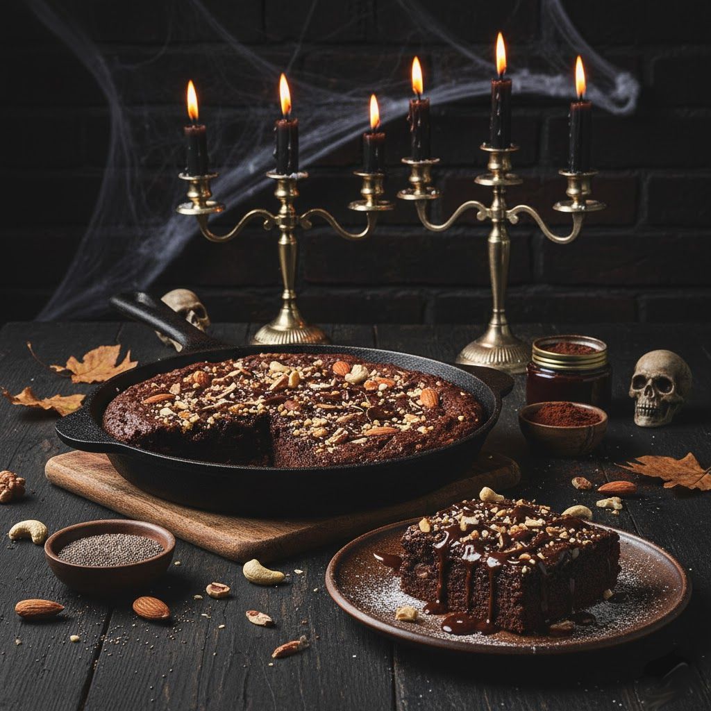 Um bom brownie vegano (também mencionado como um sucesso comprovado nos EUA) é a sobremesa perfeita para o Halloween, com sua cor escura e sabor intenso de chocolate. É um doce sem ingredientes de origem animal.